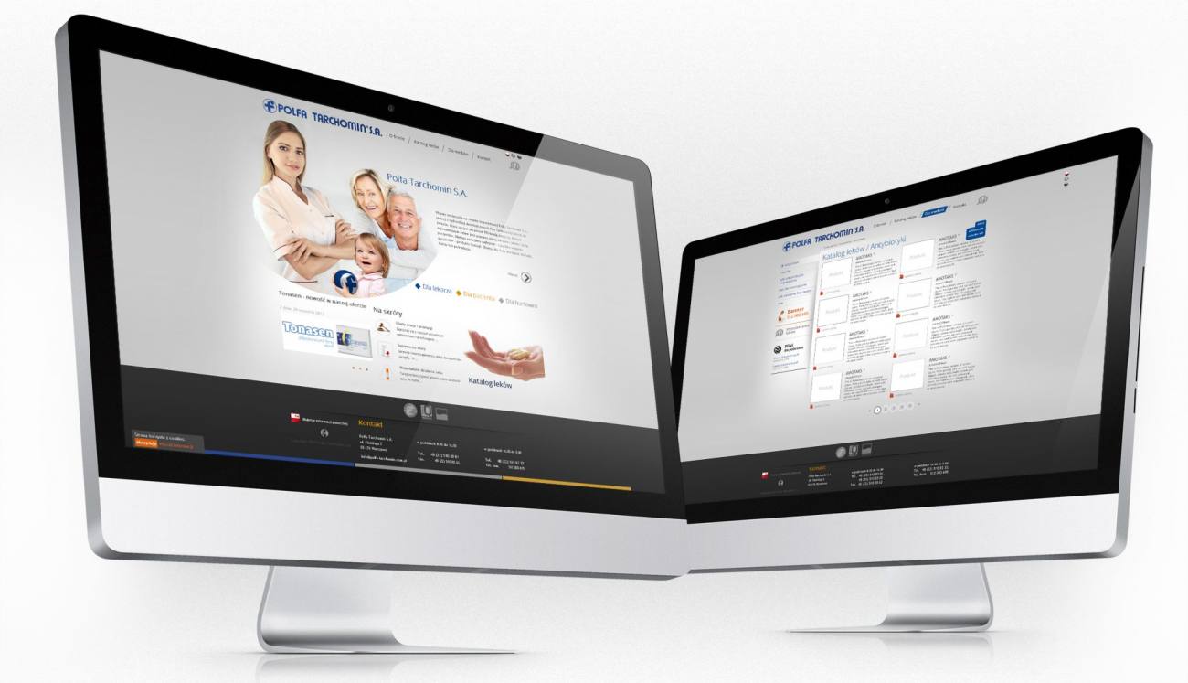 Dla Polfy Tarchomin – dobrze znanego producenta leków, przygotowałem projekt strony internetowej, strona miała przede wszystkim być maksymalnie czytelna i zawierać łatwy w nawigacji, zunifikowany katalog leków dla lekarzy (z dodatkowymi informacjami) i pacjentów, uproszczony do niezbędnych informacji.